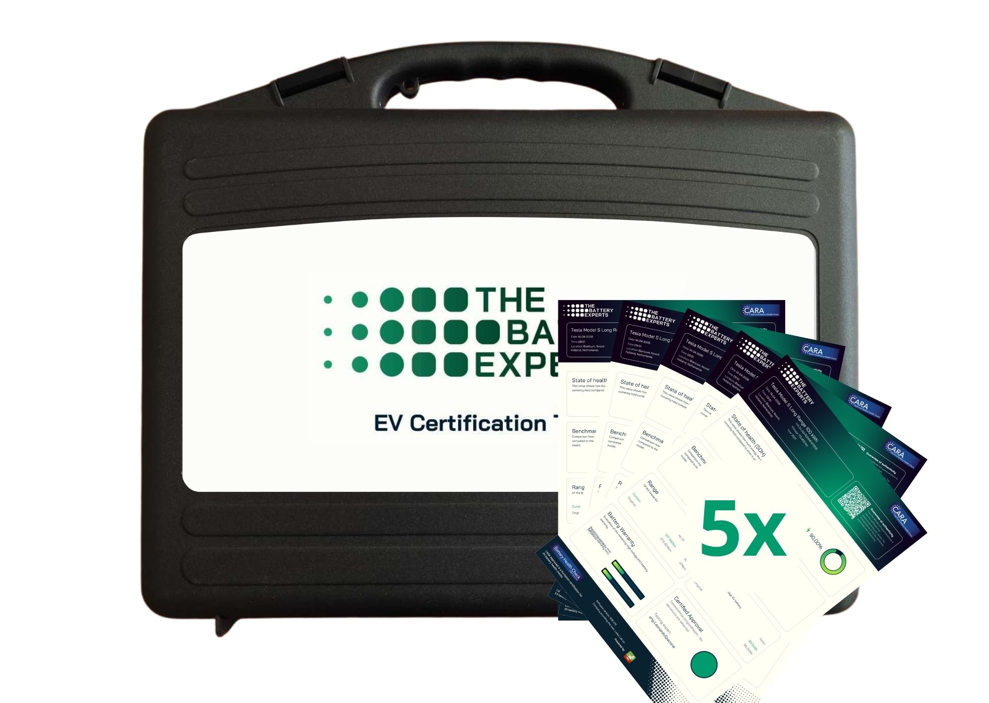 Complete toolkit met OBD-dongle en 7 adapter kabels inclusief 5 batterijcertificaat credits ter waarde van €175,-.